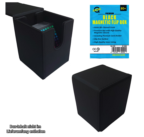 Du erhältst 1 hochwertig verarbeitete Arkero-G Premium Magnetic Flip Box zum Schützen & Transportieren deiner Pokémon Karten. Diese bietet Platz für mehr als 80 gesleevte (mit Schutzhülle versehene) Karten.